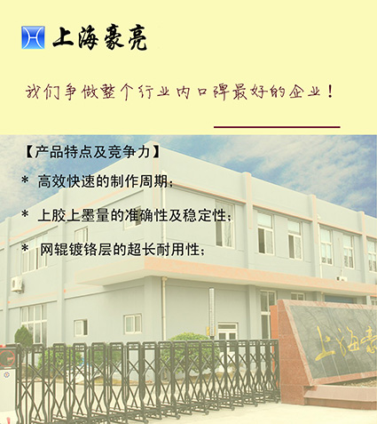 发布时间:2024-08-16 点击次数:1676上海豪亮机械有限公司是一家专业制造金属网纹辊、镀铬辊、压花辊、镜面辊等各种辊筒的专业制辊企业,产品广泛用于印刷、包装、塑胶、皮革、薄膜、胶黏制品、纸张以及各种柔性版印刷机械等行业。